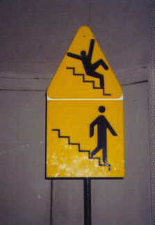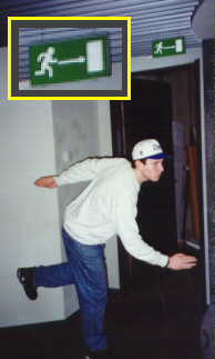 Since there were three images on this sign, it made it three times harder to completely comprehend it. One my friends thought that the center icon in the picture on the left was a solar system and that this was an entrance to the planetarium, but later admitted he was wrong after we called him an idiot. It was clearly an arrow pointing to the nearest yellow pages--you can see the similarities between the person and the walking fingers. Finally, somene told us that we were standing in the parking lot for the Italian Center for Archery, and we realized how foolish we were for not realizing that in the first place.