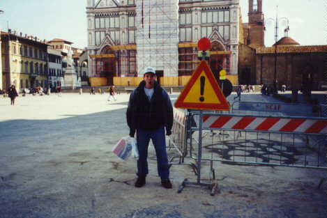 | There I am somewhere in one of the southern regions of Italy, I think. They closed off a small area and put up this sign, apparently there to catch someone's attention. I wondered if perhaps this was some sort of top secret, governmental action to tell the locals something that we American tourists could not understand... | ![]() |